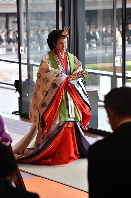 Empress Masako wearing Jyūnihitoe, Source:https://www.la.us.emb-japan.go.jp/itpr_ja/Sokuinorei.html