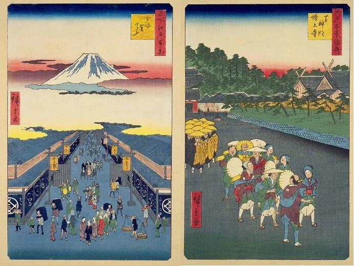 People carrying their belongings in Furoshiki in Edo Period. From The National Library Archives