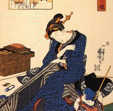 A Woman Sewing a Kimono by 歌川国芳 (Utagawa Kuniyoshi, 1798 - 1861) Source: Public Domain