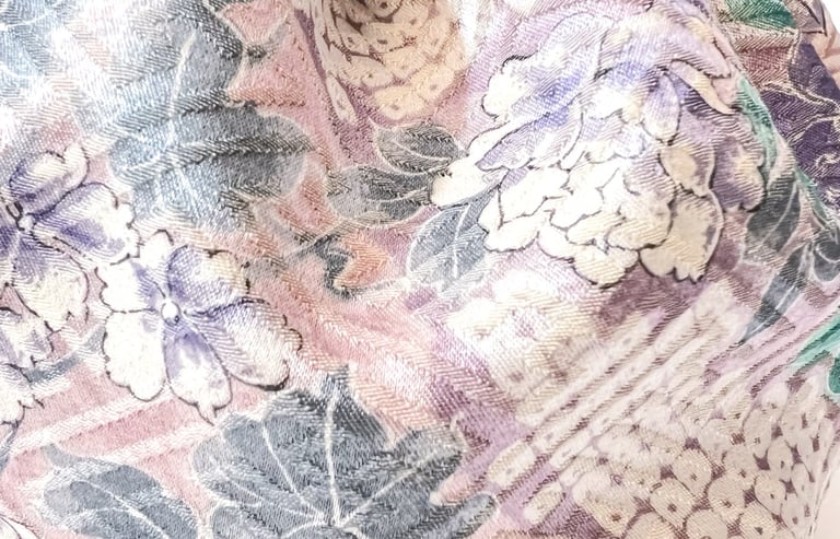 There are mainly two types of Kimono fabric. The kind in which threads are first dyed and then woven, and the kind in which white threads are first woven and then pattern is added later. Kimono cleverly utilizes only rectangular pieces of fabric in the width of 35-40cm depending on who it's for. For example, children's are 35-37cm, and men's 37-40cm, women's falling in between.