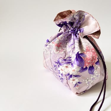 KIMONO KOMONO Kinchaku pouches are perfect to show off since they are made of carefully-selected silk or wool Kimonos with beautiful patterns. Most of our customers like to use them for going out occasions.